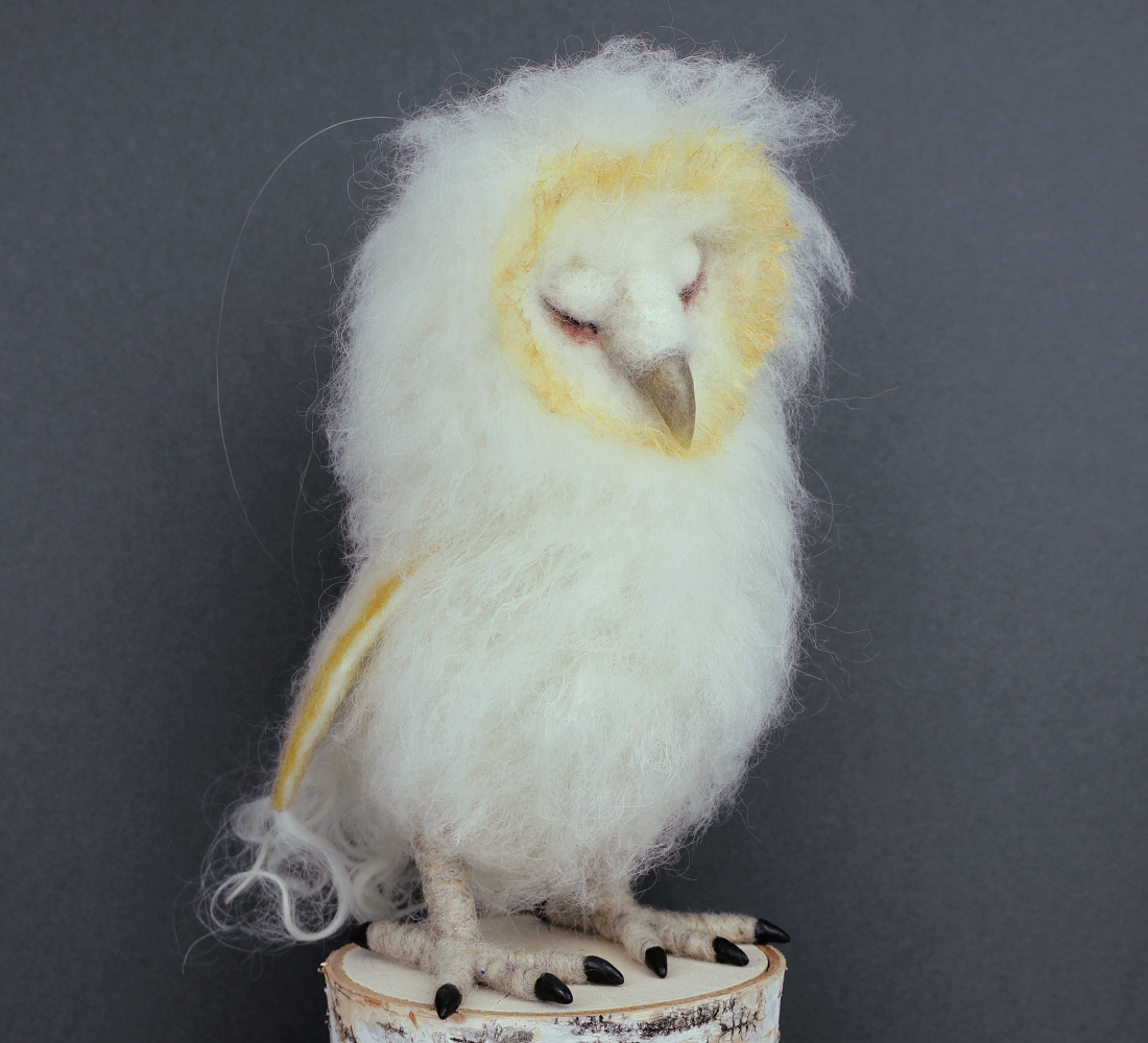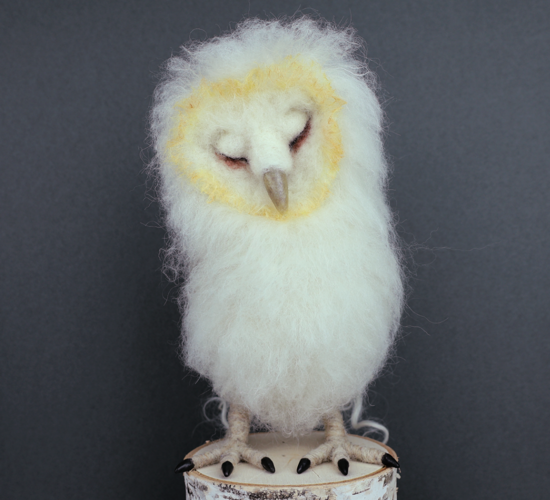 This month, I had the joy of creating a sleeping baby barn owl to donate to a very special cause—the Sarafina FIber Art Longwood Community Christmas Tree.